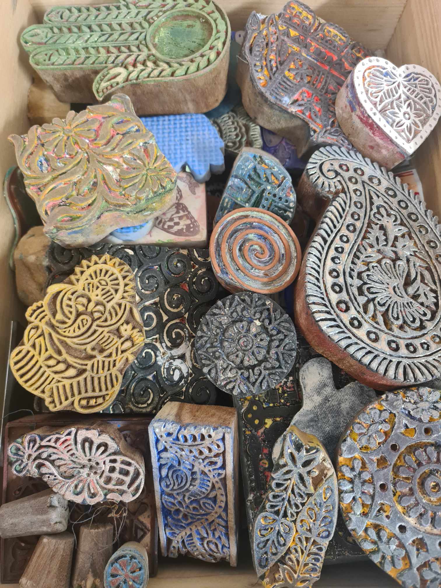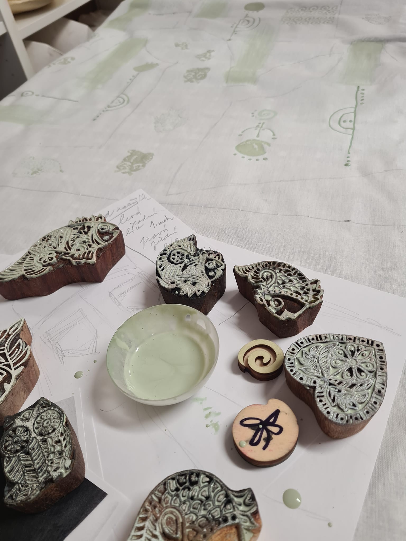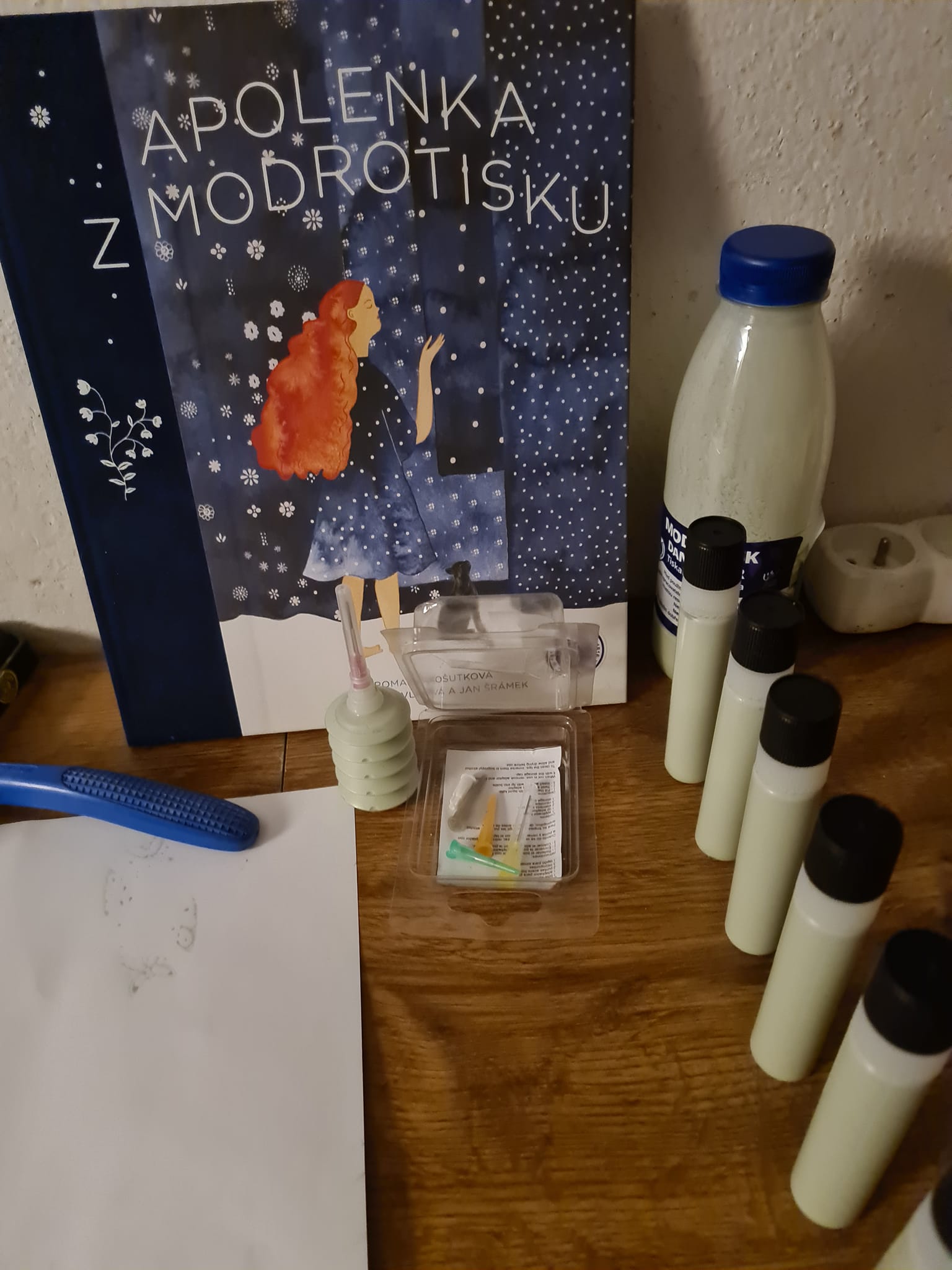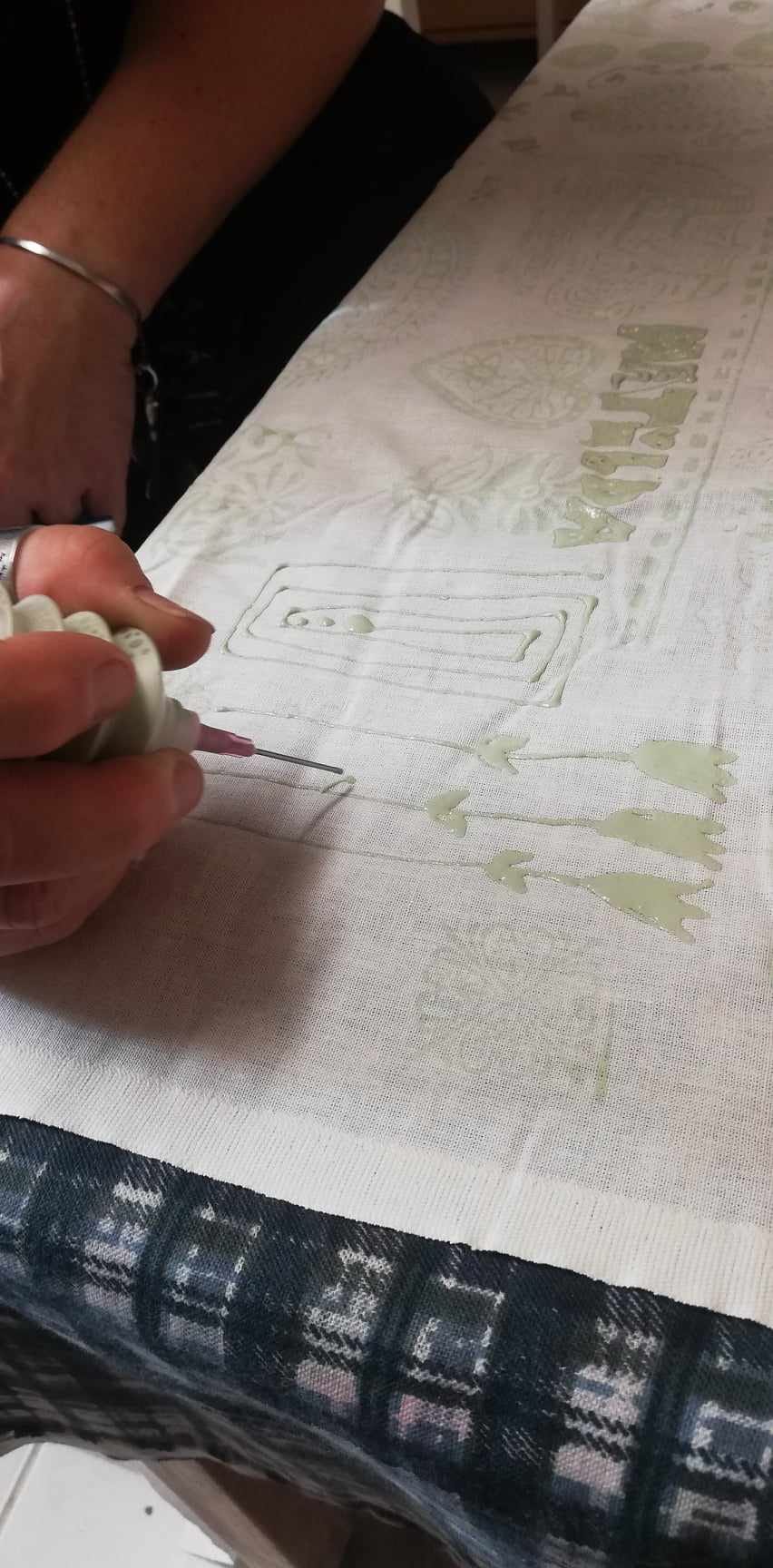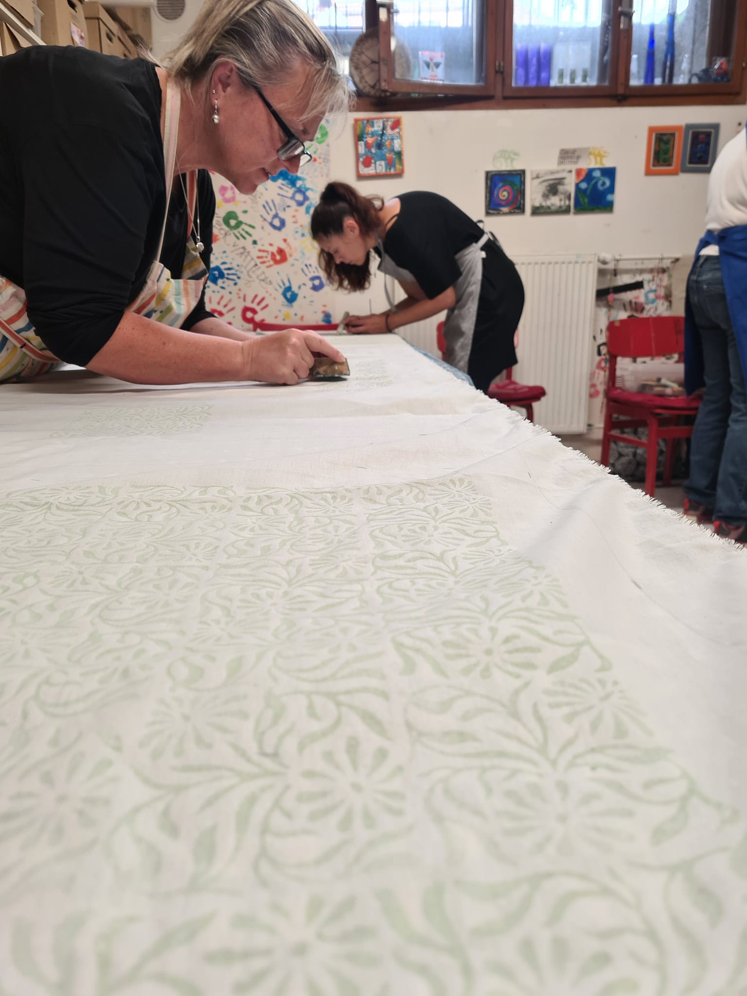Nachystám vám speciální plátno – každému 2 až 3 metry z metráže šíře 85 cm a speciální reservu, kterou budeme nanášet aplikátory, štětcem, razítky, kombinovat techniky a hrát si s nápady, které si můžete předem přichystat ..